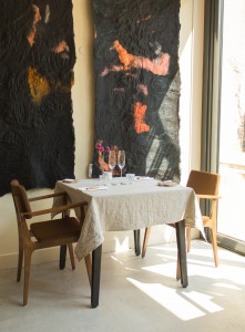 In het restaurant hangen 5 prachtige kunstwerken van Claudia Jongstra. Kunstenares Claudy Jongstra werkt met wol en vilt. Tijd, rust en aandacht voor de natuur en de wereld om haar heen zijn haar uitgangspunten. Maar het succes van haar werk, ook internationaal, trekt een steeds grotere wissel op haar vermogen om volgens haar idealen te kunnen leven en werken. Claudy Jongstra is een internationaal gerenommeerd kunstenares die werkt met wol en vilt. Ze heeft haar eigen schaapskudde en maakt zelf haar verfmaterialen uit natuurlijke grondstoffen. Ze is gepassioneerd over haar relatie tot haar leefomgeving, het milieu en de wereld. Begonnen met het maken van stoffen voor de mode-industrie, maakt ze de laatste jaren steeds vaker grote autonome kunstwerken. Haar missie is om de wereld letterlijk zachter te maken. Zo ook in het restaurant.